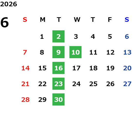 火曜日・第2水曜日の定休日に加え、