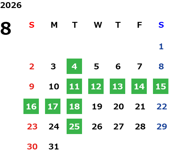 誠に勝手ではございますが、火曜・第2水曜(ToP Town宇和島は第2火曜日)に加え、8月10日(土)~8月16日(金)を夏季休業とさせていただきます。