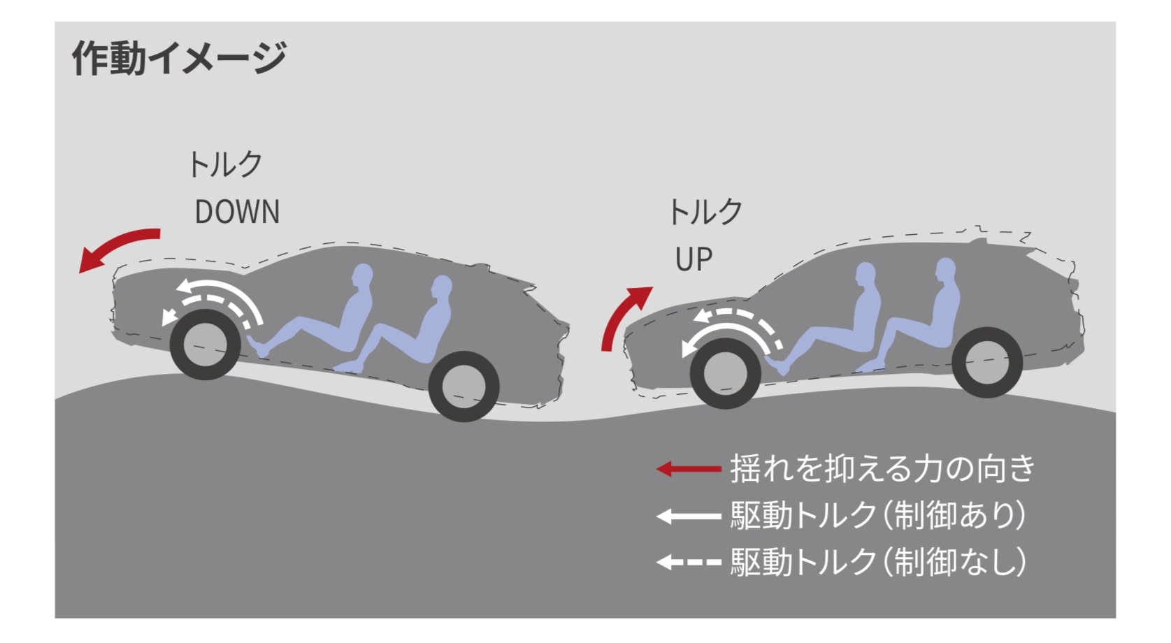 エンジン(ガソリン車)・モーター(ハイブリッド車)のトルクをリアルタイムに制御することで