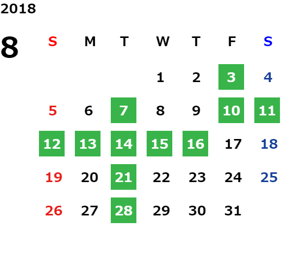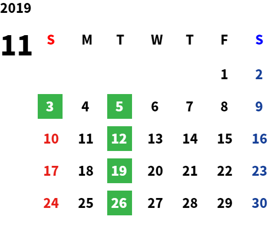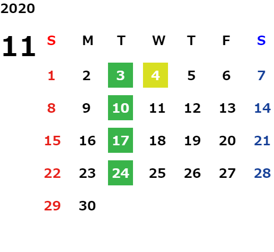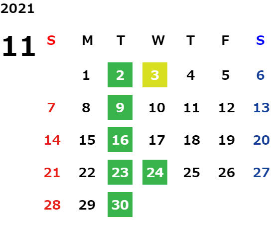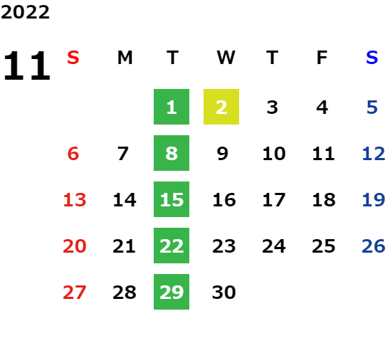 毎週火曜日・祝日・第2水曜日